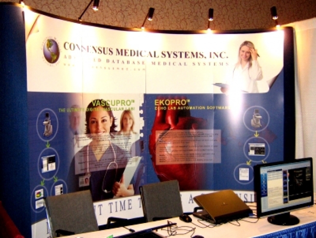 Signage design for Consensus Medical Systems, Inc trade shows. The design was done with Adobe Photoshop CS2. Dimensions 10 x 6.5 (feet)
